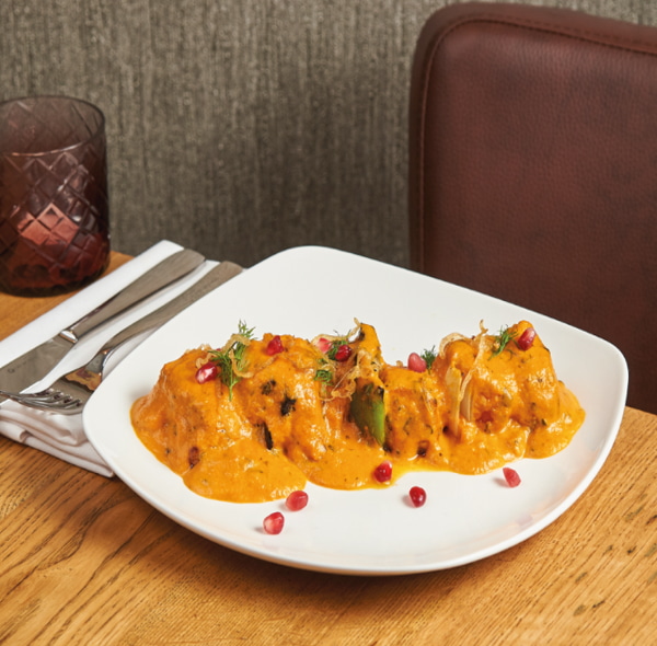 Tender marinated fish fillets deep fried and cooked in a special makhani ...