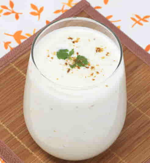 A savory yogurt drink seasoned with salt and spices, offering a refreshing and tangy flavour.