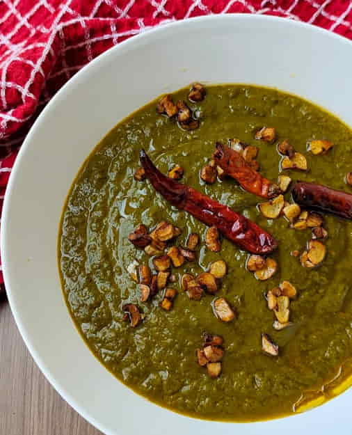 Fresh spinach leaves cooked with cumin seeds, ginger & garlic.