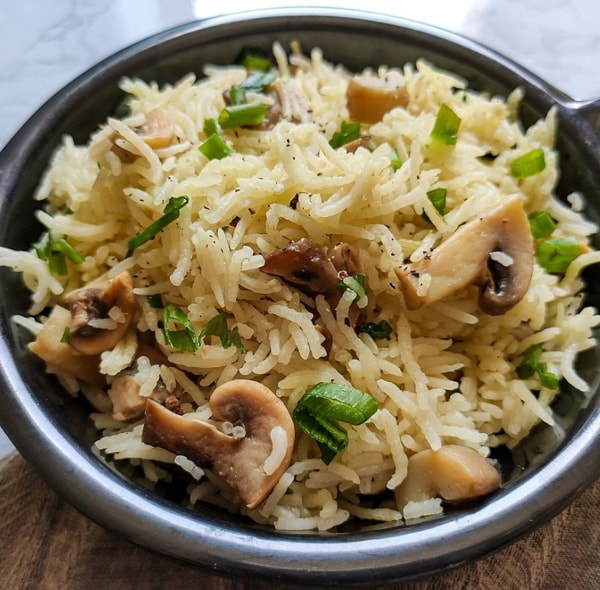 flavorful stir-fried rice with mushrooms, vegetables, and aromatic spices – a satisfying large ...