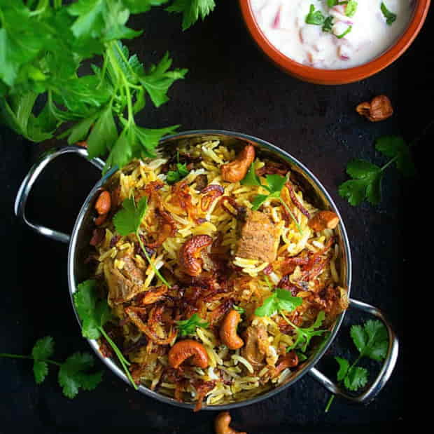 Chicken, lamb and king prawns cooked with rice in a traditional way and served with vegetable sauce.
