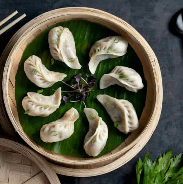Deep fried vegetable mo:mo: cooked in tomato sauce with onion & peepers with our home made ...